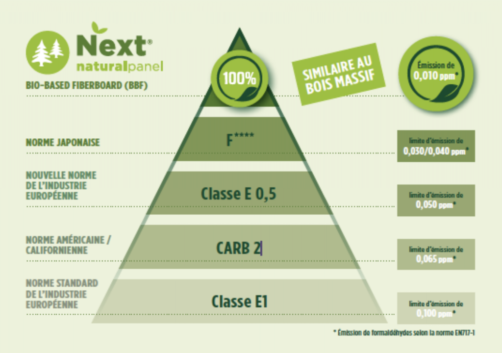 Grâce à l’utilisation d’une résine 100% végétale GreenbyEvertree, sans ajout de formaldéhyde, NEXT affiche des performances et des qualités environnementales uniques.